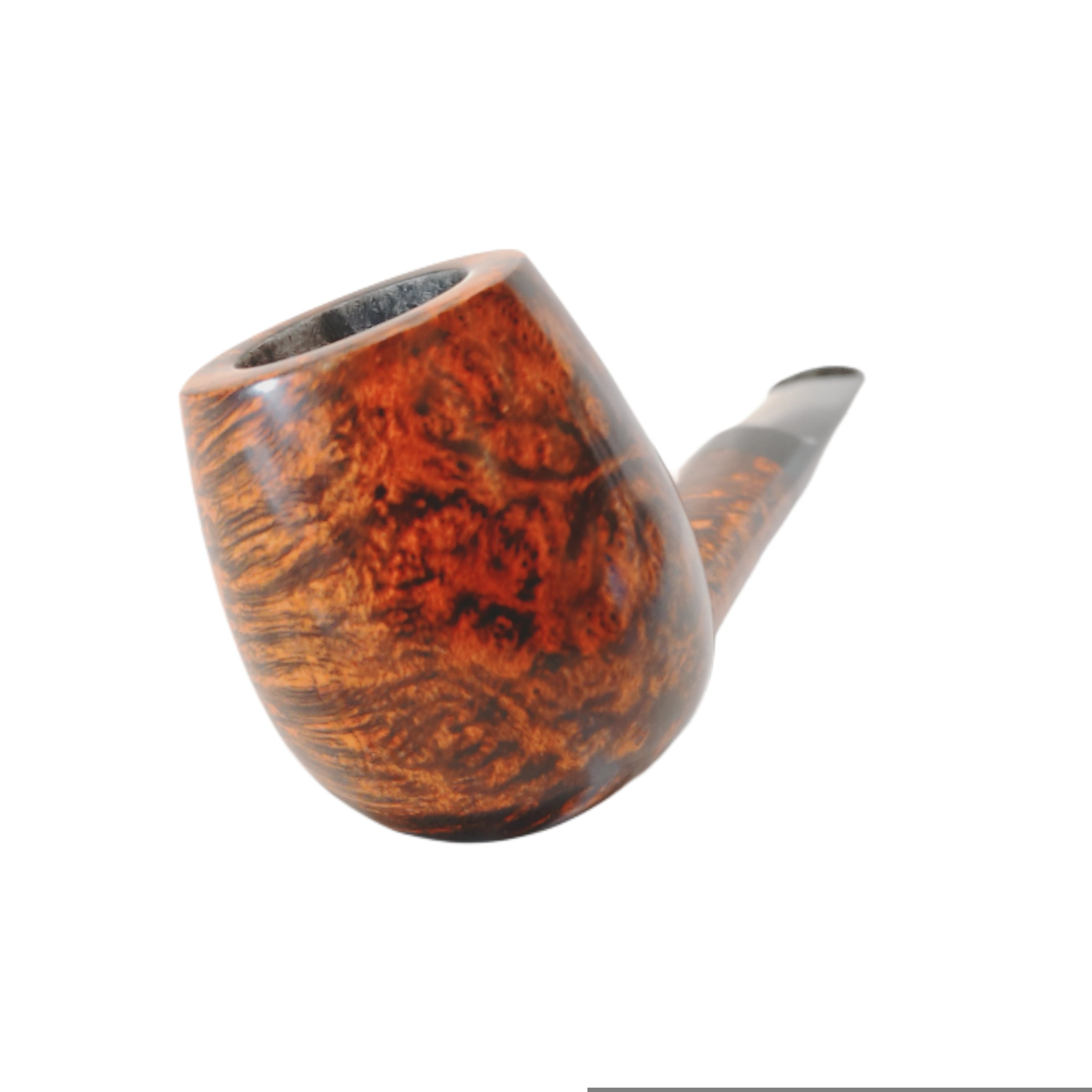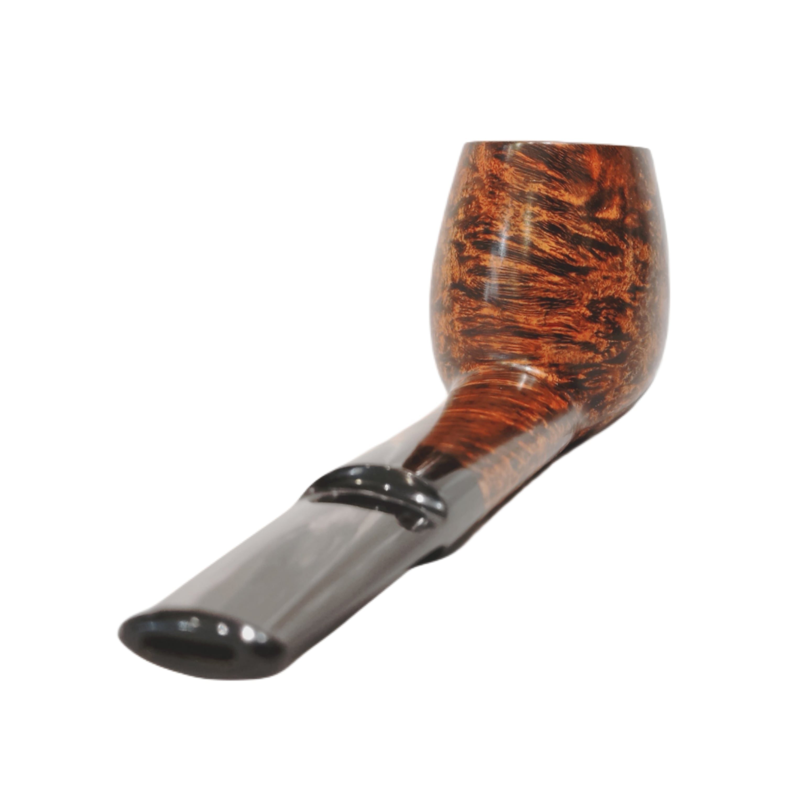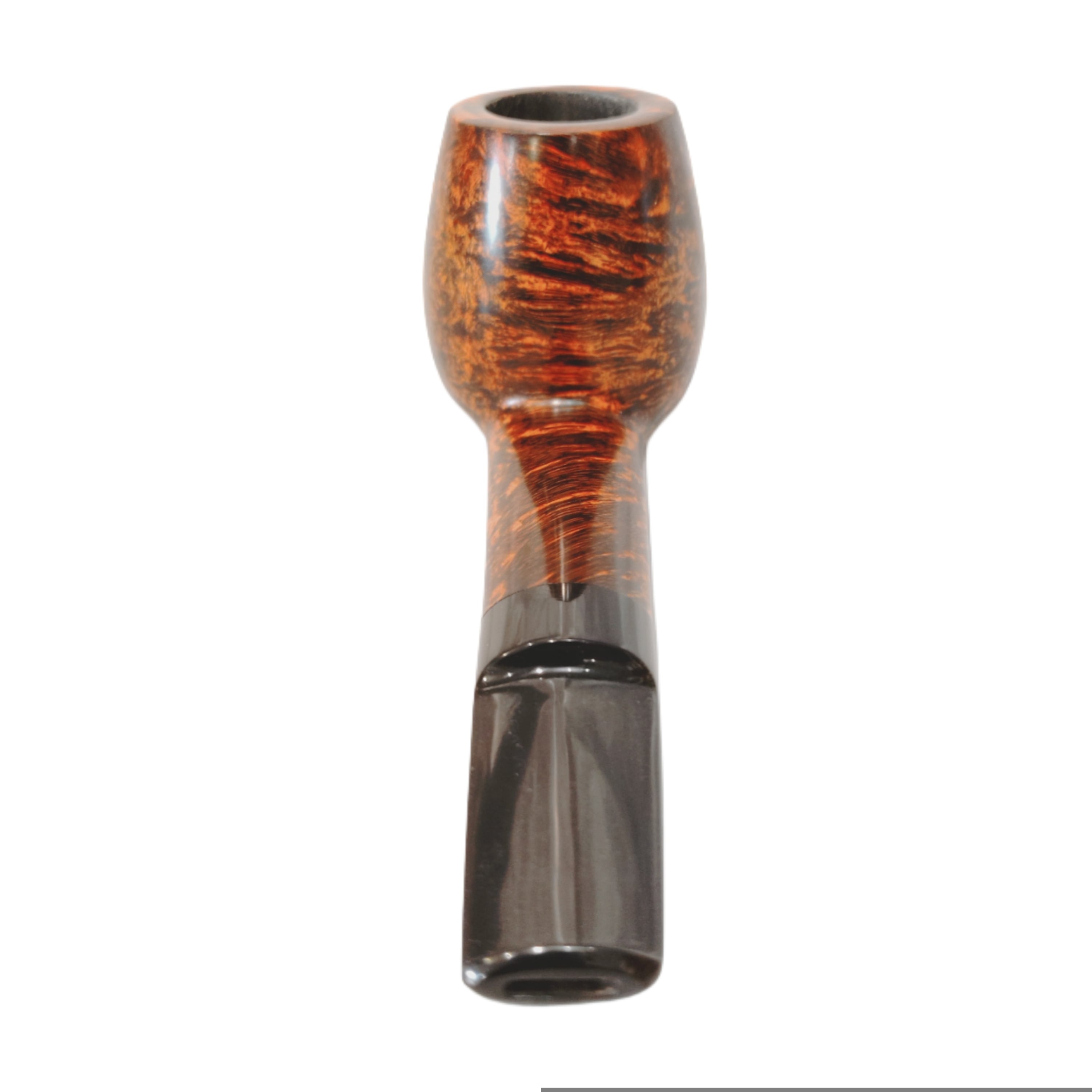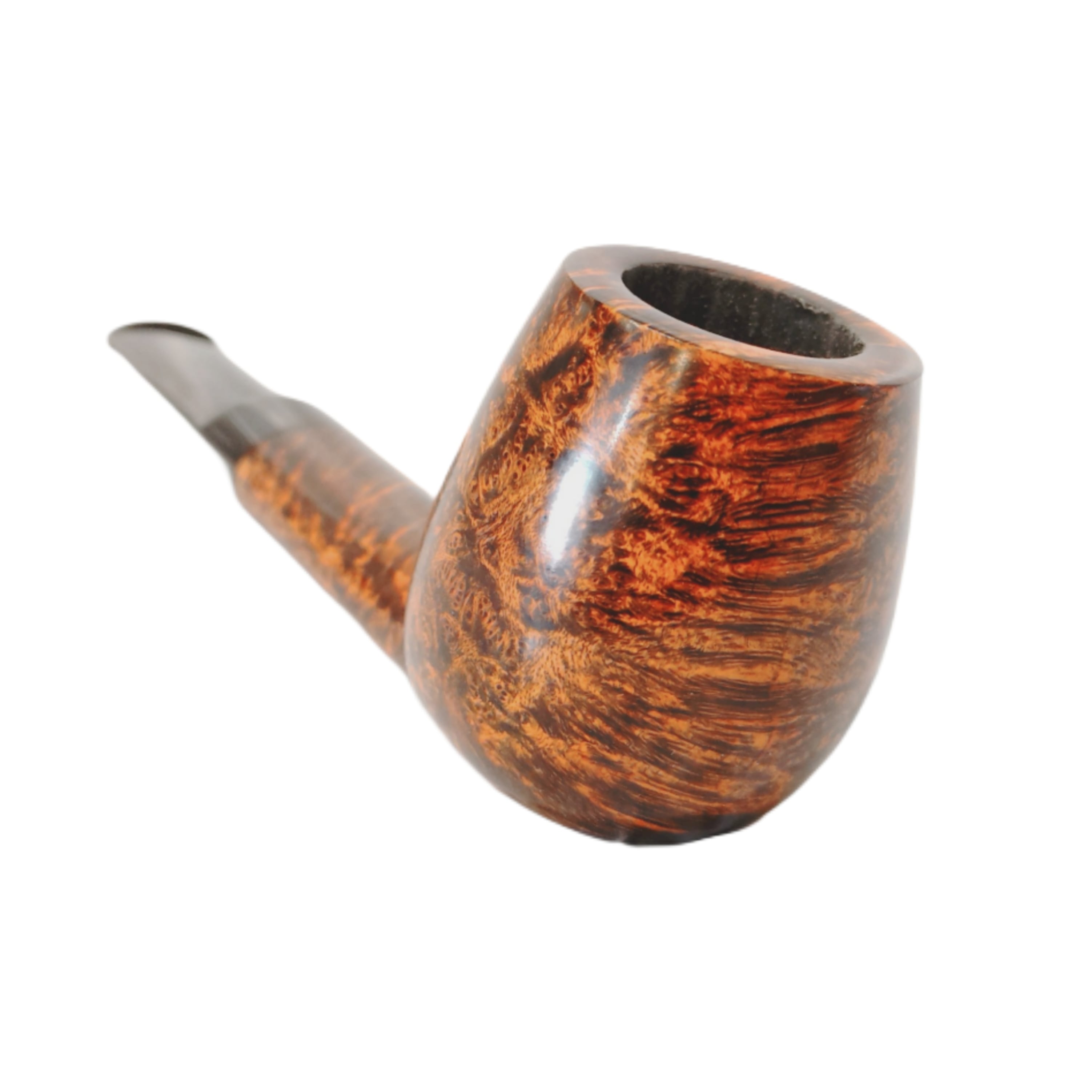 そう、シャンクからボウルトップに向かって階段の様に連なる、クロスグレインの美しさを堪能出来るのである。煙をゆったりと吹き戻した時、ボウルから煙がゆっくりと立ち上る。その様は「天国への階段」の様に映るだろう。このパイプの持ち主にしか実感できない、特別な時間とアングル。もし、シャンクが丸みを帯びていた場合、グレインがぼやけてしまっただろう。