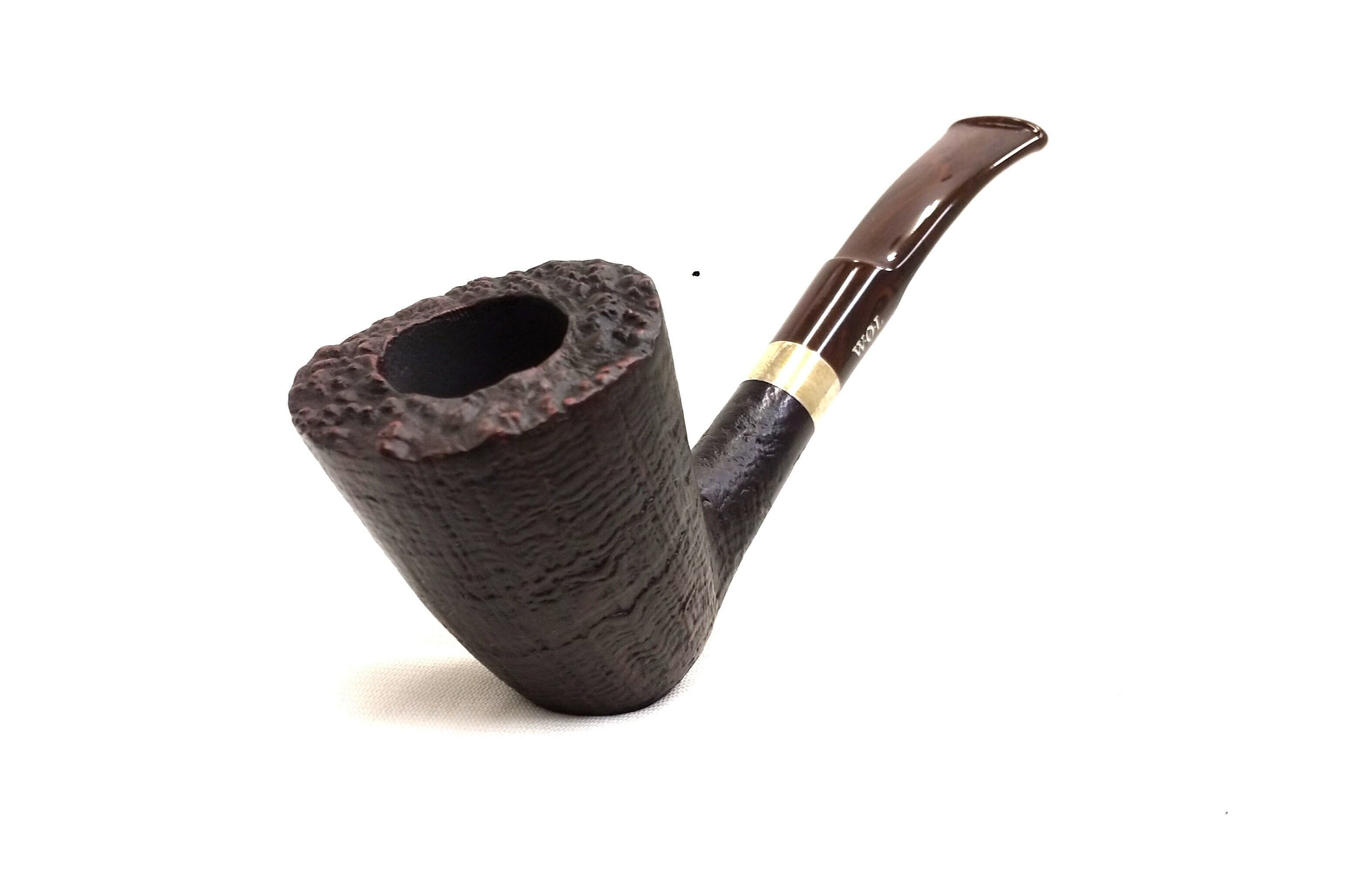 デンマークを代表するパイプブランド、ラールセン。モデル62はラフトップを活かしたシェイプ。原木はプラトゥを贅沢に使用。サンドブラストにすることで、リンググレインの美しさを満喫出来る。リングはスターリングシルバー製。マウスピースは変色の心配がないマーブル模様のアクリル製。
