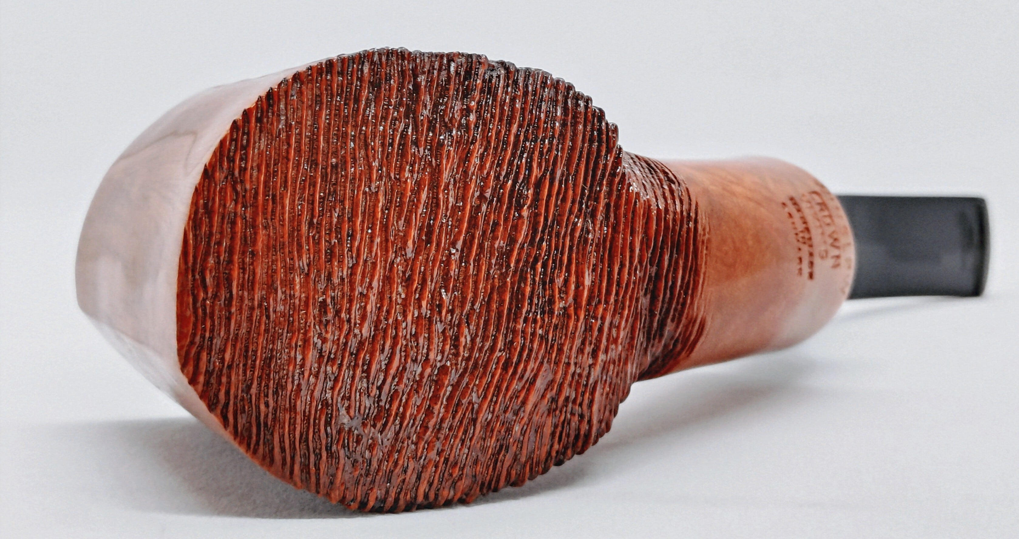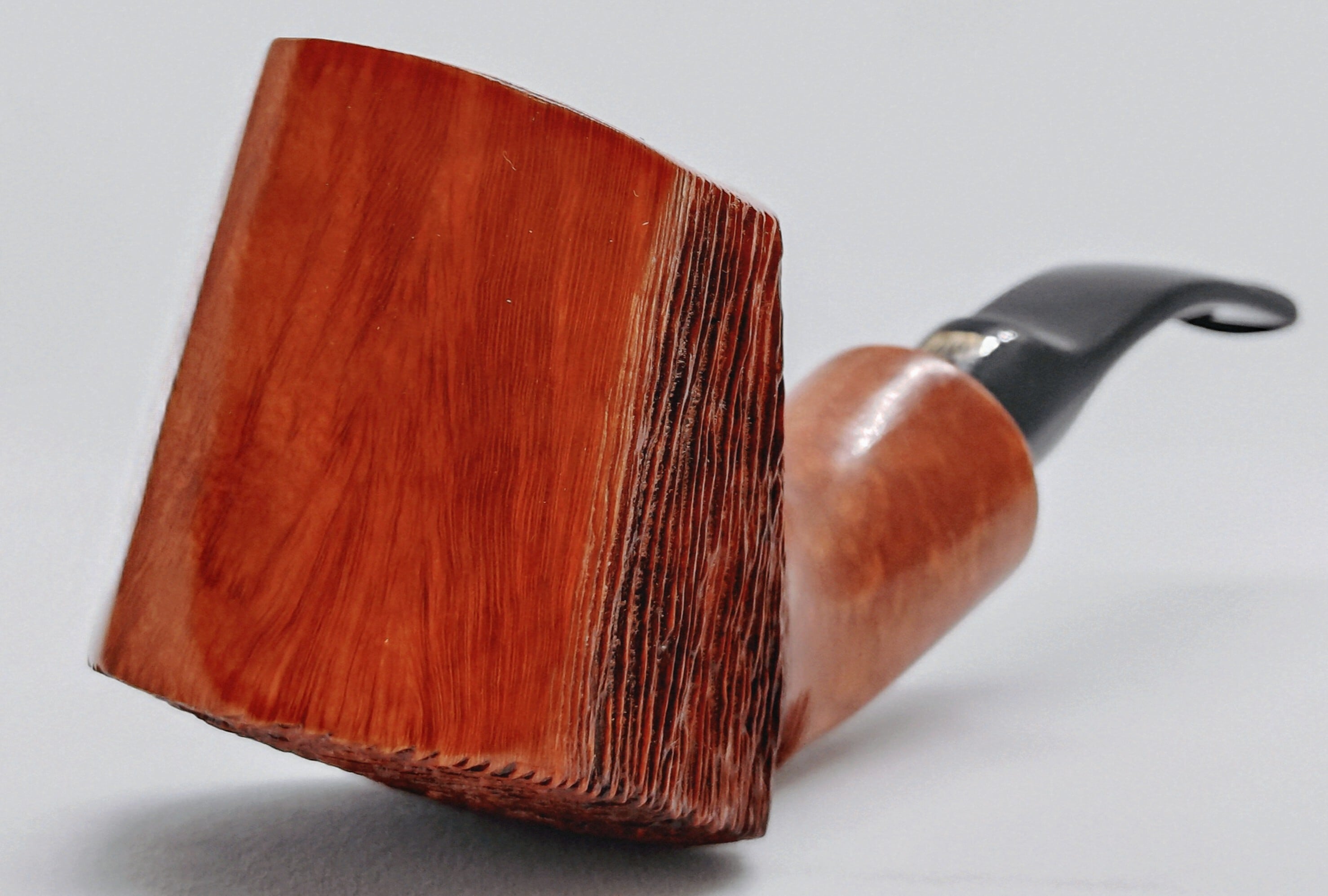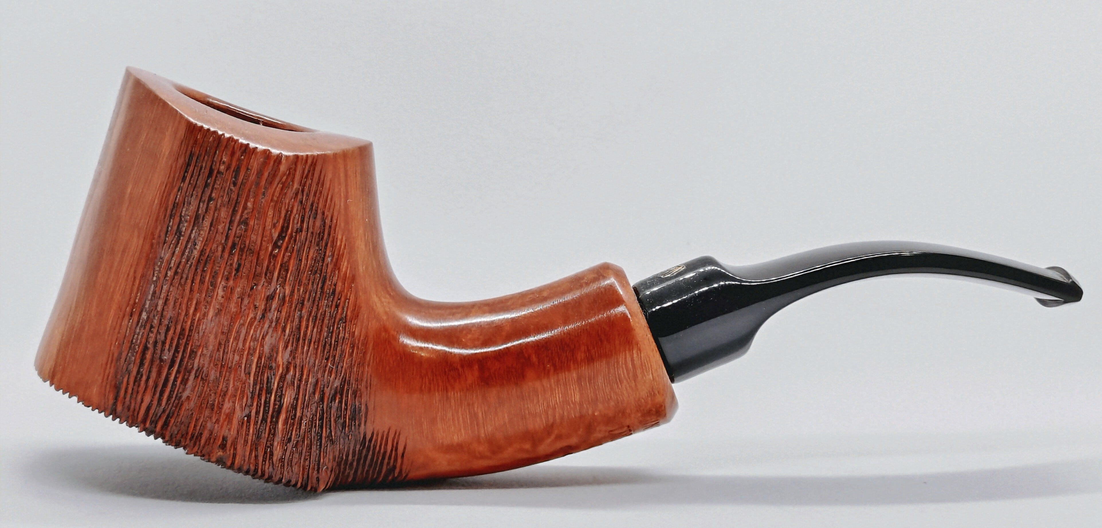 かなり大きめなボウルにスムースとラスティックが共存した、「パーシャルラスティック」とも言うべきでしょうか。やや赤みがかったライト仕上げで、ボウルではストレートグレインと極め細やかなラスティックが共存しています。一本のパイプで二つの魅力を味わえる、そう考えますとパーシャルラスティックはお得感がありますね。